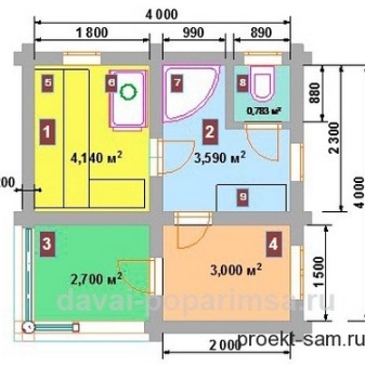 Une option plus pratique et plus confortable est une pièce divisée en trois zones. Le vestiaire (qui sert généralement de pré-bain), le hammam et une petite salle de lavage (photo 3). Le poêle est installé dans le hammam, qui chauffe la pièce adjacente - le vestiaire.