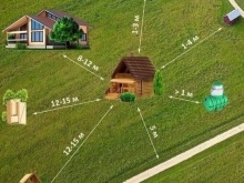 - SanPiN определя минималното разстояние от границите на чужди имоти на 3 метра и това разстояние трябва да се спазва, ако дренажът и канализацията не са включени в плановете на строителя. За да се определи правилно местоположението на функционалната структура, трябва да се вземе предвид разстоянието от пътя (не само червената линия, но и самата лента за движение, интензивността на движението по нея и броят на лентите).