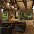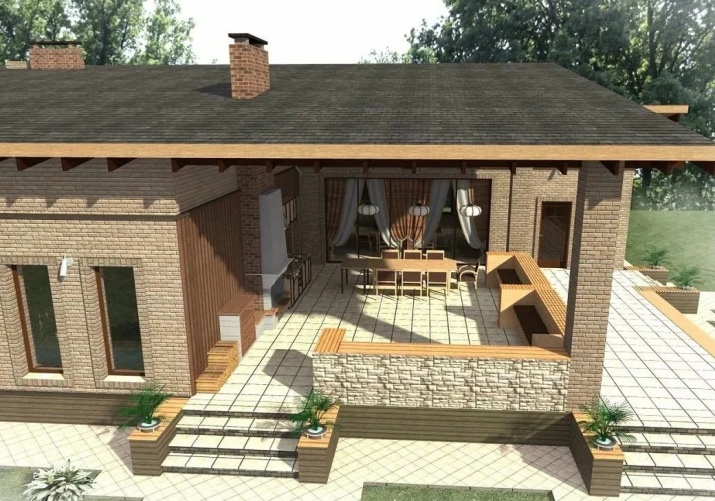 Помислете за размера на верандата, особено ако планирате да посрещнете много гости и да организирате барбекю. Не е препоръчително да изграждате вътрешен двор с барбекю с площ, по-малка от 7 квадратни метра. В идеалния случай тя трябва да започва от 9 квадратни метра, за да можете да поставите върху нея маса, столове или шезлонги и да не пречите на барбекюто. Ниша в стената за складиране на дърва за огрев на веранда с барбекю улеснява организацията на готвенето.