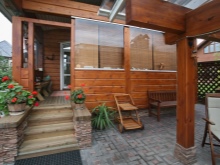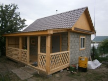 - Стената на сауната е една от стените на верандата, което спестява разходи за строителство.