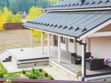 Материалите, използвани за завършване на къщата за сауна с вътрешен двор, също са много важни. Всъщност верандата е открита площ, която е снабдена с покрив, за да се предпази от слънцето и атмосферните влияния. Покривният материал на терасата може да бъде същият като този на сауната или дори на пристройката.