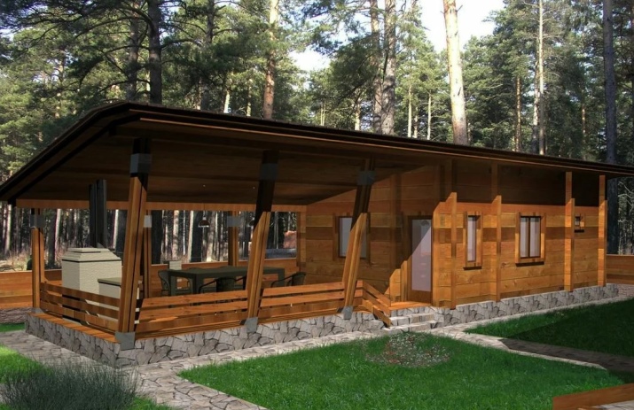 - Едноетажна. Това не може да бъде много голяма сграда, която, като правило, е основният набор от стаи. Но има и едноетажни бани със санитарни помещения, стаи за почивка. Терасата може да бъде прикрепена към стаята за релакс и по този начин да се свърже с нея.
