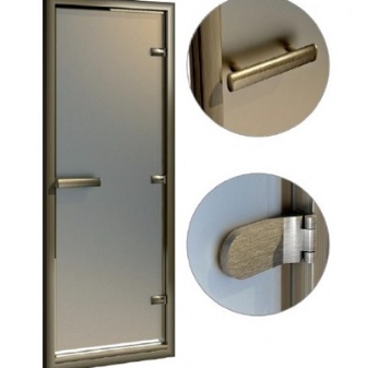 Стъкленият панел и сложният микроклимат на сауната изискват специфични характеристики от аксесоарите и фитингите. Всички елементи на вратата трябва да издържат на високи температури и влажност, да не се прегряват и да не губят първоначалния си вид с течение на времето. Обковът трябва да е красив, практичен, надежден и удобен. Нека разгледаме по-подробно всеки елемент на вратата.