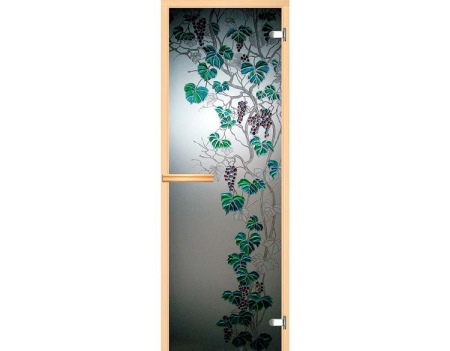 - Пъстър мотив на лоза украсява стъклената повърхност на вратата.