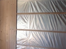 Материалът за пароизолацията трябва да се избере внимателно. Много хора погрешно смятат, че евтин материал като полиетиленово фолио ще свърши работа. Но при излагане на високи температури тя се топи. Най-разпространеният и ефективен материал е алуминиевото фолио. Препоръчително е да го запечатате с топлоустойчива самозалепваща лента. Не забравяйте, че топлината изтича не само през стените, но и през тавана и пода. Логично е на тези места също да има някаква топлоизолация.