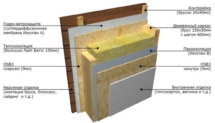 В повечето случаи външният слой не е покрит, тъй като присъства под формата на декоративна обшивка. Поради това самата обшивка може да се разглежда като топлинна защита и носещ елемент, който увеличава дълготрайността на конструкцията. Потребителите обикновено предпочитат да поставят поне 2 слоя в рамката на къщата за сауна. Материалите, използвани за направата на изолацията, са различни. Едната трябва да бъде облицована с плочки, а другата - валцувана. Строителите твърдят, че OSB пай няма да съдържа пролуки и следователно топлинната защита ще бъде по-добра. При полагането на изолацията обърнете внимание на страната на материала. Неправилното полагане може да доведе до лошо функциониране на сауната.