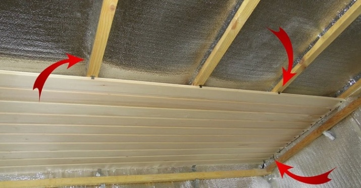 При изолирането на тавана трябва да се има предвид едно важно нещо. По-рано писахме, че между пароизолацията и облицовката на стените не трябва да има междина. В тавана обаче кухината не трябва да се премахва. Парата ще се издигне нагоре и обшивката ще се намокри. Оставената кухина ще помогне на декоративния слой да изсъхне по-бързо.