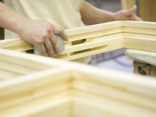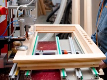 - Фабриката изработва прозорците лепена ламинирана дървесина, обикновено изработена от бор.