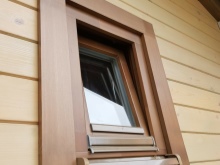 - Ако банята е изградена от дървен материал, свиването й ще се прояви дълго време след построяването. Ако прозорците се поставят веднага в отворите, има опасност рамките да се изкривят силно и всички връзки да загубят първоначалната си херметичност. За да се избегнат подобни проблеми, е препоръчително да се монтират прозорците, като се остави разстояние от 5-10 cm между горната мигаща лента и дървения материал/тухлите, от които е изградена основата на стената. В сгради от камък или тухла тези проблеми не съществуват, така че прозорците могат да се монтират веднага, без да остават пролуки.