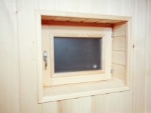 - В помещението за сауна може да се монтира малък прозорец с размери 20 x 40 cm. Над горния рафт могат да бъдат монтирани две от тях.