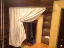 Някои потребители решават да украсят прозорците на сауната с лек тюл с дискретен дизайн. Тази декорация често не се допълва от плътни завеси - Всичко зависи от вкуса на собствениците. Така или иначе, тези допълнения внасят топлина и уют в средата.