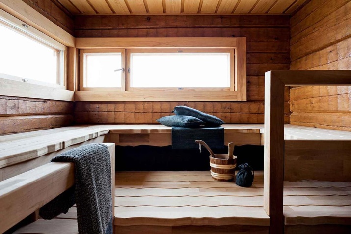 В парната баня малки прозорци могат да бъдат разположени точно над пейките и седалките в горната част. В някои случаи миниатюрните конструкции могат да се поставят и на малко разстояние от пода.