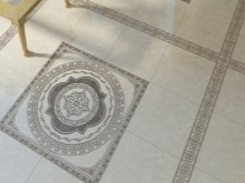 Декорацията под формата на две плочки образува модел, който е в пълна хармония с цялостната картина на флорална изтънченост и привлекателност.