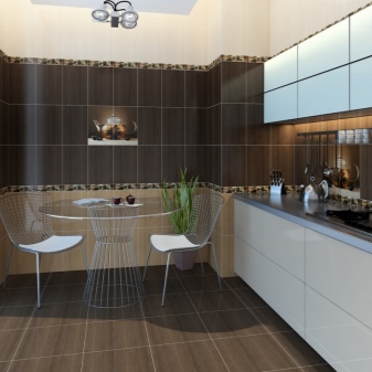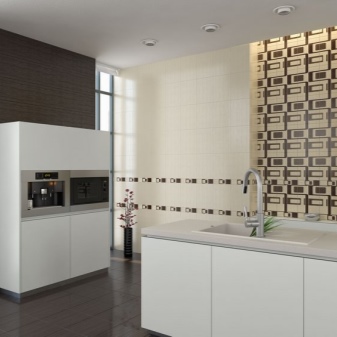 Кадифе - е идеален за кухни и бани. Основата на тази колекция е цветът венге, който се отличава със светли и тъмни тонове. Кафявият и бежовият цвят наподобяват очертанията на дърво, а геометричните фигури на релефната рамка се вписват идеално в цялостния ексцентричен интериор. Това изображение придава на стаята нотка на оригиналност;