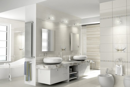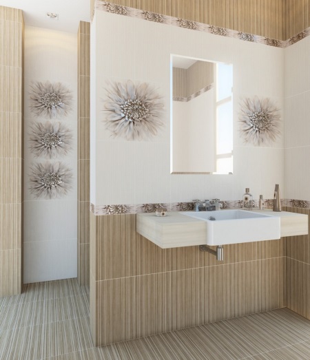 На първо място обърнете внимание на размера на банята. Ако тя е с малки размери, тогава за такъв вариант керамиката в светли нюанси и големи размери ще подхожда идеално, защото такова изображение визуално ще увеличи пространствените обеми на стаята.