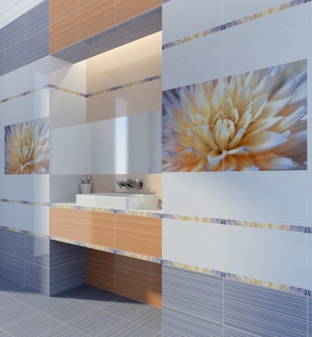 Бордюрът е с рисунка на цветни листенца, което допринася за доброто настроение, а разнообразието от керамични палитри ще остави незабравимо впечатление от цялостната картина на интериора;