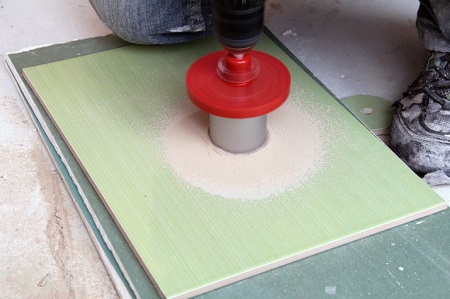 Дупките с голям диаметър могат да се пробиват само с бормашини или балерини, като това трябва да се направи преди полагането на плочките. Преди всичко е необходимо да маркирате плочката, след това да поставите инструмента в правилната позиция и с лек натиск да започнете пробиването с ниска скорост. Препоръчително е плочките да се навлажняват с вода, за да се намали образуването на прах.