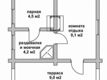 Tento typ stavby je ideální pro velké pozemky. Projekt zahrnuje malou vstupní halu, předsíň, koupelnu (sprchový kout s WC), parní lázeň, odpočinkovou místnost, technickou místnost, kuchyň a otevřenou terasu (v létě k ochlazení). Za nejdůležitější místnost této stavby je považována parní lázeň, která je vybavena saunovým vařičem a pohodlnými lavicemi. V pomocné místnosti najdete čisticí prostředky a různé koupelnové doplňky. Pokud jde o odpočívárnu, musí být vybavena vším potřebným pro správný a pohodlný odpočinek. V této místnosti je vhodné umístit prostor pro stolní hry, domácí kino a kulečník.
