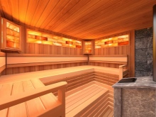 Nejčastějším způsobem výzdoby interiéru sauny jsou cihly nebo přírodní kámen.