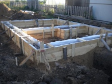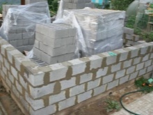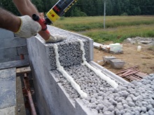 Pokud stavíte vanu v oblastech s drsnými klimatickými podmínkami, musíte místo před pokládkou tvárnic izolovat. Položený pás se z vnější strany sroluje střešní lepenkou, poté se materiál složí a svými okraji se připevní k soklu. První řada základových pásů se pokládá na cementovou maltu, do které se musí přidat plastifikátor. Tloušťka malty nesmí překročit 3 mm.