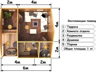 Předsíň není povinná, ale je lepší ji mít, protože zabrání pronikání studeného vzduchu do ostatních místností. V umývárně je obvykle instalován sprchový kout a relaxační místnost je zařízena tak, aby v ní bylo možné pohodlně a útulně odpočívat mezi návštěvami parní lázně.