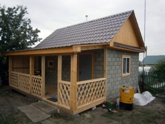 V přízemí jsou umístěny všechny místnosti potřebné pro koupací procedury a ve druhém patře je komfortní zóna pro odpočinek. Aby taková šedá a skromná stavba dokonale zapadla do celkového vzhledu pozemku, je třeba bloky z hliněného kameniva zakrýt krásným obložením z přírodního masivního dřeva, plastu nebo imitace kamene.