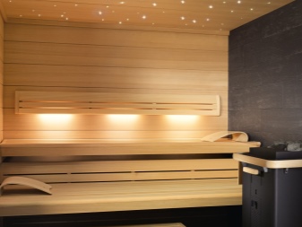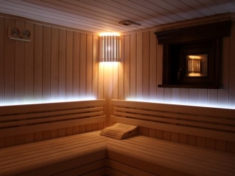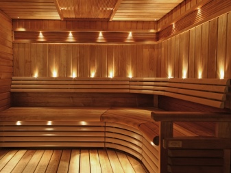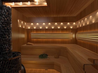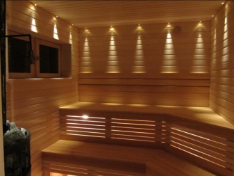 Je třeba pečlivě zvážit výběr svítidel, která mají být instalována v saunové místnosti. A ty se svým způsobem liší od venkovního osvětlení. Většina zářivkových a halogenových světel není vhodná pro vlhkost a vysoké teploty. Měly by se používat pouze v relaxačních místnostech nebo v předsíni.