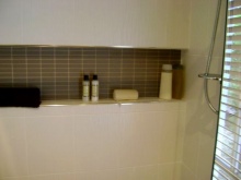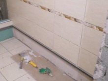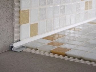 Položení rohu pod dlaždici. Tato metoda je poněkud složitější a vyžaduje od montážní firmy určité odborné znalosti. Instalace koutu se provádí současně s instalací sanitární keramiky: nejprve vana nebo sprchový kout, pak kout a teprve potom zbytek obkladů.