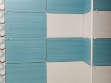 - Poté se dlaždice položí ve svislém směru a následně se připevní vnitřní a vnější rohy.