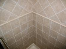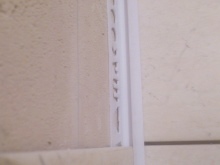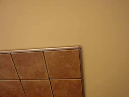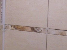 - První možností je položit rohy na předem vyznačený povrch. Poté se položí základní obklad a dlaždice se oříznou ve spojích s rohem.