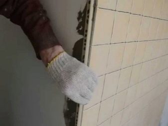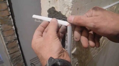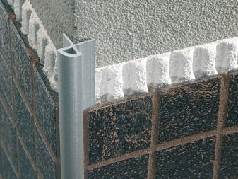 Technologie je stejná: nařízněte roh na požadovanou délku a poté naneste tenkou vrstvu lepidla na stěnu v místě instalace. Pevně přitiskněte rohový díl ke stěně. Po instalaci celého rohu je možné začít s obkládáním. Lepidlo se nanese na povrch dlaždic, vloží se do drážek v rohu a pevně se přitlačí ke stěně.