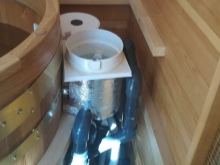 Nogle gange er vandvarmeanlægget placeret lige inde i døbefonten. Disse er adskilt fra resten af skålen med et særligt hegn. Ofte kan dette hegn også fungere som en bænk. En sådan døbefont vil ligne et japansk ofuro-bad. Vandet opvarmes i døbefonten ved hjælp af en jernovn i skålen. En anden enhed, der følger med varmelegemet, er et vandfilter. Det er ret sjældent, at man kan købe en. For dem, der ikke har været i stand til at tømme badekarret, findes der ofte særlige pumper. Efter badet pumpes vandet ud i det fri eller over i en anden beholder. Det er dog ikke en hurtig og nem proces.