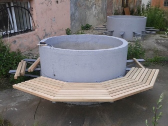Fremstillingsmaterialet kan vælges uafhængigt (når du laver på bestilling eller selv), såvel som på grundlag af et udvalg af tilgængelige eller populære modeller. I dag består det meste af sortimentet af sammensatte skrifttyper. Det er færdige skåle, der er udstyret med stiger, varme, foring og hydromassage. Du skal blot installere dem, og så er de klar til brug med det samme. De er fremstillet af forskellige materialer. Hvis du selv vil lave en skrifttype, er listen over tilgængelige materialer også omfattende - du kan lave den af beton, forskellige metaller og selvfølgelig træ og andre materialer.