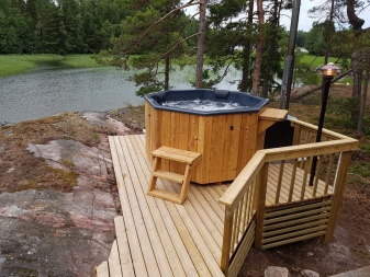 Det er naturligvis ikke altid den bedste løsning at installere et bassin til din sauna eller dit dampbad. Зe køb af alle de nødvendige dele og installationen af en swimmingpool kan koste relativt mange penge og tid. Et badekar er et kompakt alternativ. Det er en stor skål med vand. Producenterne eksperimenterer med forskellige skåldesigns, men den mest almindelige type er et stort tøndeformet kar med metalbøjler. Den er praktisk at bruge derhjemme eller i sommerhuset. Mindre ofte bruges skrifttypen som et supplement til poolen, men oftere er den en vigtig egenskab i badet. Det er også almindeligt at installere skålen udendørs. I koldt vejr fyldes døbefonten med både varmt og varmt vand, men sjældnere fyldes den naturligvis med koldt vand.
