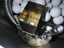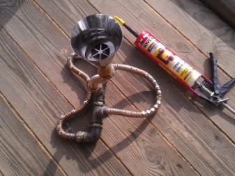 - En tragt er fremstillet af en metalplade. Hvis der anvendes et præfabrikeret produkt, skal der laves huller i tragten for at kunne skære forsyningsledningen ind.