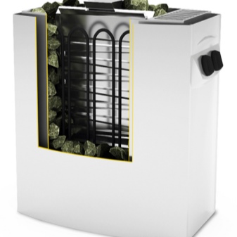 - Varmeelementer. Det mest populære valg af dampgenerator til mini-saunaen i hjemmet. For at få apparatet til at fungere så længe som muligt anbefales det at blødgøre og demineralisere vandet.