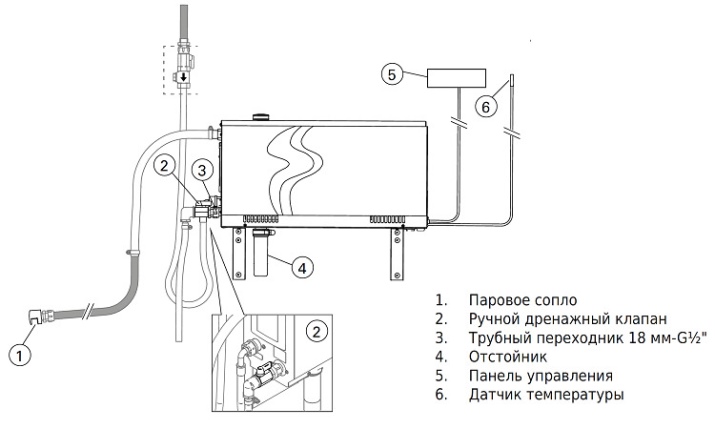 En dampgenerator til saunaen er Det er en kompakt type enhed, der skal installeres i nærheden af dampbadet.