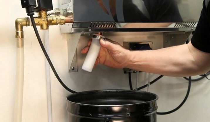 På ydersiden af kabinettet er der dysesom forbinder generatoren med vandforsyningen. Dampgeneratoren er også udstyret med en særlig tilslutning tryk påDer er også en afløbsventil, rørudgange og sensoråbninger.