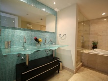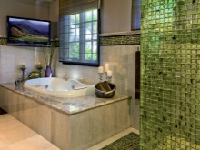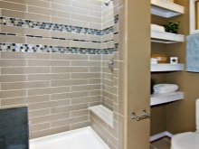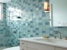 - Refleksion. Dette er en af de største fordele ved glas. Takket være den gør flisen rummet omkring den lettere og mere rummeligt. Dette punkt er meget vigtigt, når du f.eks. skal indrette et lille eller mørkt rum.