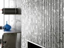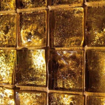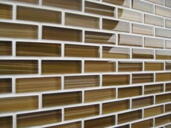 Glasfliserne i form af murværk harmonerer perfekt med ethvert materiale. Små mursten forstørrer ikke kun visuelt rummet, men ser også meget interessante og usædvanlige ud.