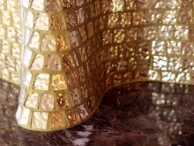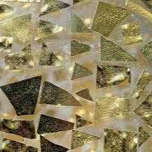 - "Glasdekorationer". Det er små stykker (65*65 eller 100*100 mm), der bruges til at skabe en mosaikflise eller til at indramme et mosaikbillede. Emaljerede glasfliser. En af disse fliser har en tykkelse på 9 mm. Pladen har en farvet, uigennemsigtig overflade.