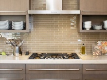 1. Køkken. I de seneste år er muligheden for at erstatte køkkenforpladsen med keramiske fliser med glas i form af firkantede blokke eller mursten blevet særlig populær. En dramatisk flisebelægning med kontrastfarvede mursten eller fliser i subtile, fine mønstre kan være med til at forædle dette lille rum.