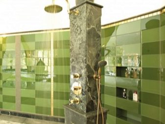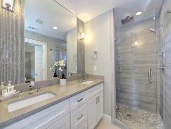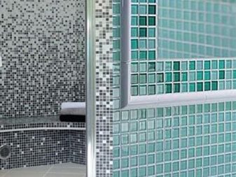 Gennemsigtige fliser er de mest populære, fordi de er universelt egnede til enhver farvekombination i interiøret. På badeværelset vælges mosaikker eller fliser, der passer til farven på væggene, loftet eller gulvet.