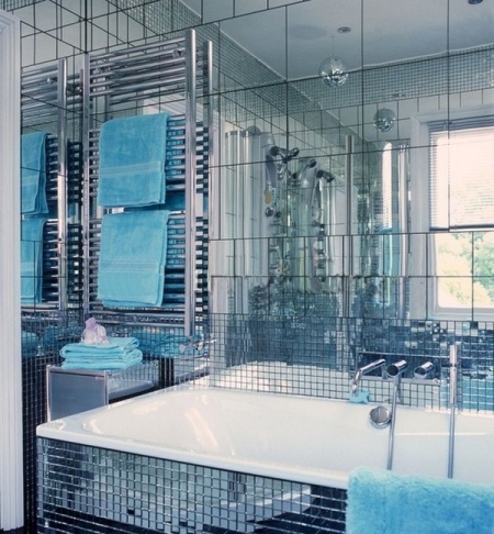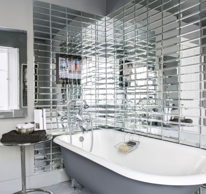 Glasindretning er den bedste løsning til små rum. For visuelt at få rummet til at virke fyldigere er det nok at installere glasfliser i et ternmønster eller diagonalt, at dekorere væggen foran et vindue eller at kombinere glas og almindelige fliser.