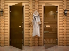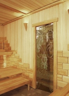 Zum Beispiel, Die Tür, die in den Dampfraum führt, muss so konstruiert sein, dass sie extremen Bedingungen standhält. Es darf nicht durch heißen Dampf, hohe Luftfeuchtigkeit oder hohe Temperaturen beeinträchtigt werden. Geeignet sind Modelle aus Holz, Kunststoff oder Glas. Sie werden nicht durch Überhitzung oder Kontakt mit Feuchtigkeit beeinträchtigt.