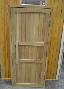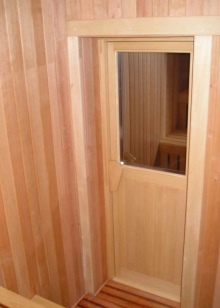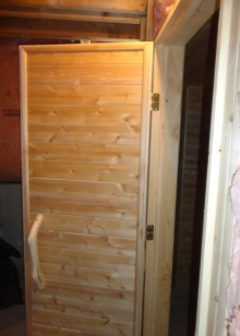 Viele Heimwerker beschließen, ihre eigene Saunatür aus Holz herzustellen. Meistens werden dafür Kiefernholzplatten verwendet. Um die Ästhetik und Attraktivität des Modells zu erhöhen, wird es mit einer Verkleidung aus Nut- und Federbrettern ergänzt.