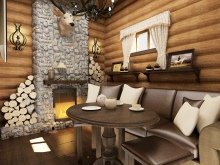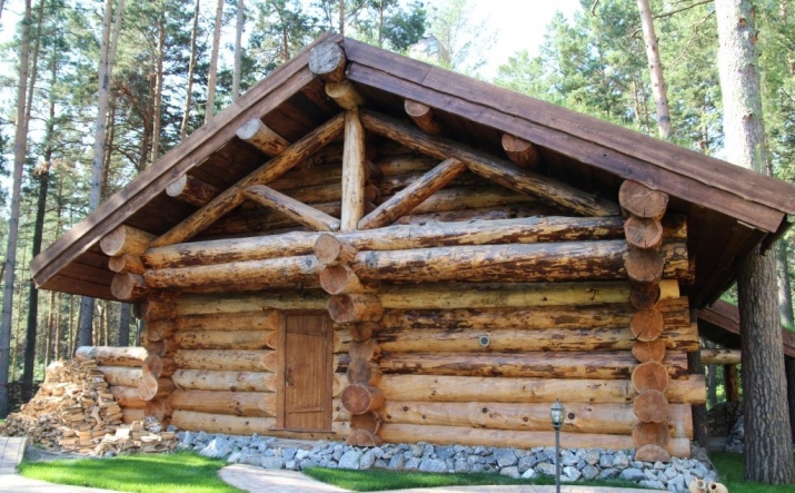 Blockhütten sind beliebt. Diese Lösung ermöglicht es, im Gegensatz zu kegelförmigen Exemplaren, ohne großen Aufwand eine flachere und glattere Wand herzustellen. Die empfohlenen Arten sind Fichte und Kiefer. Aber nicht von der Winterernte! Im Gegensatz zu Birkenholz ist dieses Holz in der kalten Jahreszeit stark mit Feuchtigkeit gesättigt.