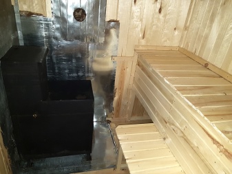 Der nächste Schritt ist der Einbau des Kochers. Sowohl elektrische als auch holzbefeuerte Ausführungen sind für den Container geeignet. Die beste Lösung ist jedoch eine Kombination aus Metalltank und Mauerwerk. Der Saunaofen wird am besten in der Trennwand zwischen dem Saunaraum und dem Waschraum angebracht. Auf diese Weise können Sie zwei Räume gleichzeitig beheizen. Der Abstand zwischen der Wand und dem Saunaofen muss mindestens 20 cm betragen.