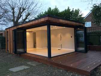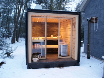 Sie können eine solche Sauna zu jeder Jahreszeit bauen. Wenn Sie zwei Container miteinander verbinden, erhalten Sie ein funktionelleres Gebäude.
