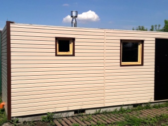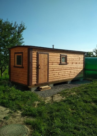 Die Außenseite des Containers kann mit Holzbrettern verkleidet sein. Nach Abschluss der Arbeiten muss das Holz mit einem speziellen Mörtel behandelt werden, der das Holz vor Schimmel und Mehltau schützt. Eine weitere Option ist das Abstellgleis. In diesem Fall sind keine weiteren Behandlungen erforderlich.